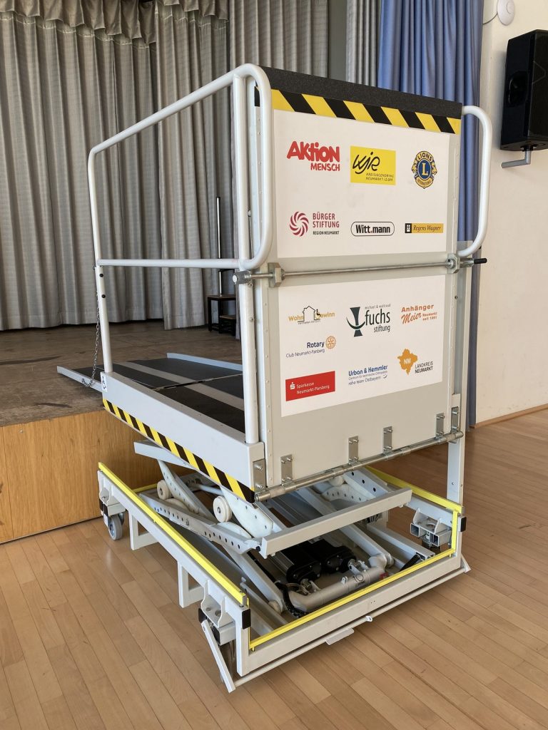 Für barrierefreien Zugang zu Bühnen und Podesten bei Ehrungen, Podiumsdiskussionen, Auftritte und Veranstaltungen aller Art. Mit Anhänger für einfachen Transport.